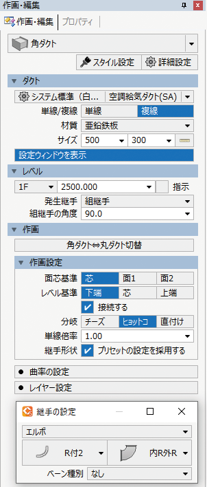 継手・バルブ・ダンパなどの種類を編集できます。