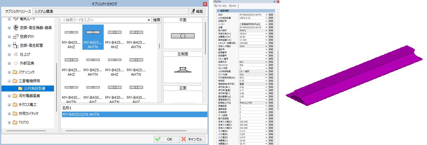 可能となります。また、Revit® との互換ではRevit® 上の属性でメーカー情報を確認できます。