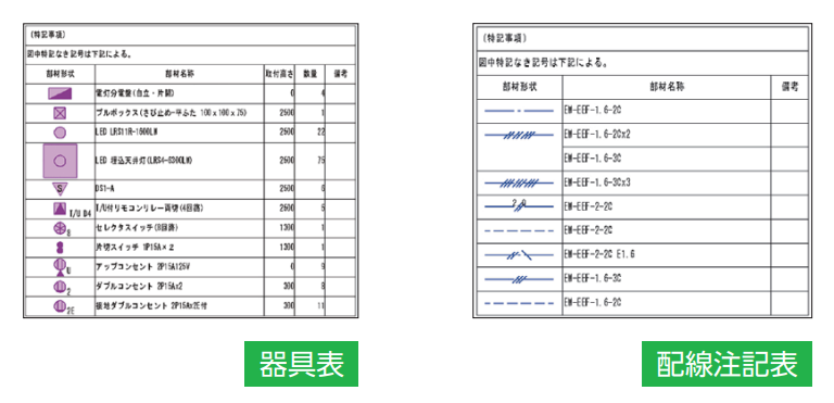 「電気公共施設型番表」などを自動作成します。
