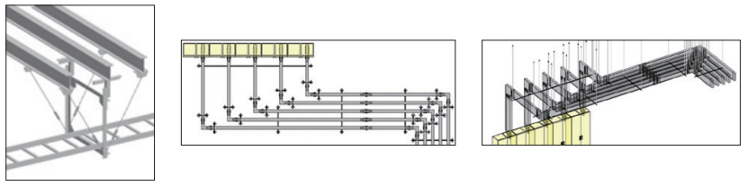 電気複線ルートのほか、ルートに対するインサートや耐震基準に沿った吊りも作画できます。