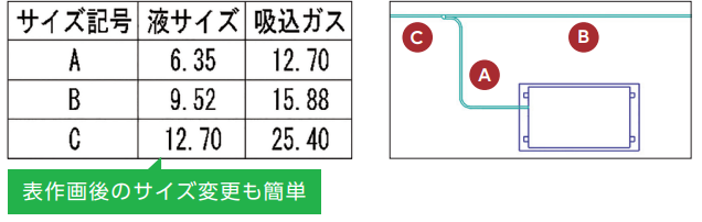また、Excelを参照した冷媒サイズ表も作画できます。