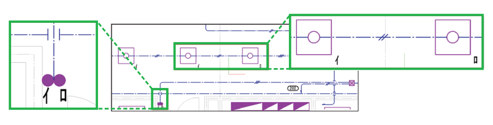部材に点滅回路属性を付与すれば、回路の条数を計算し、配線条数記号を自動で作画できます。