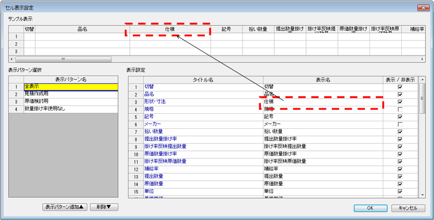 また、現在登録しているセル表示パターンへ上書きも可能です。